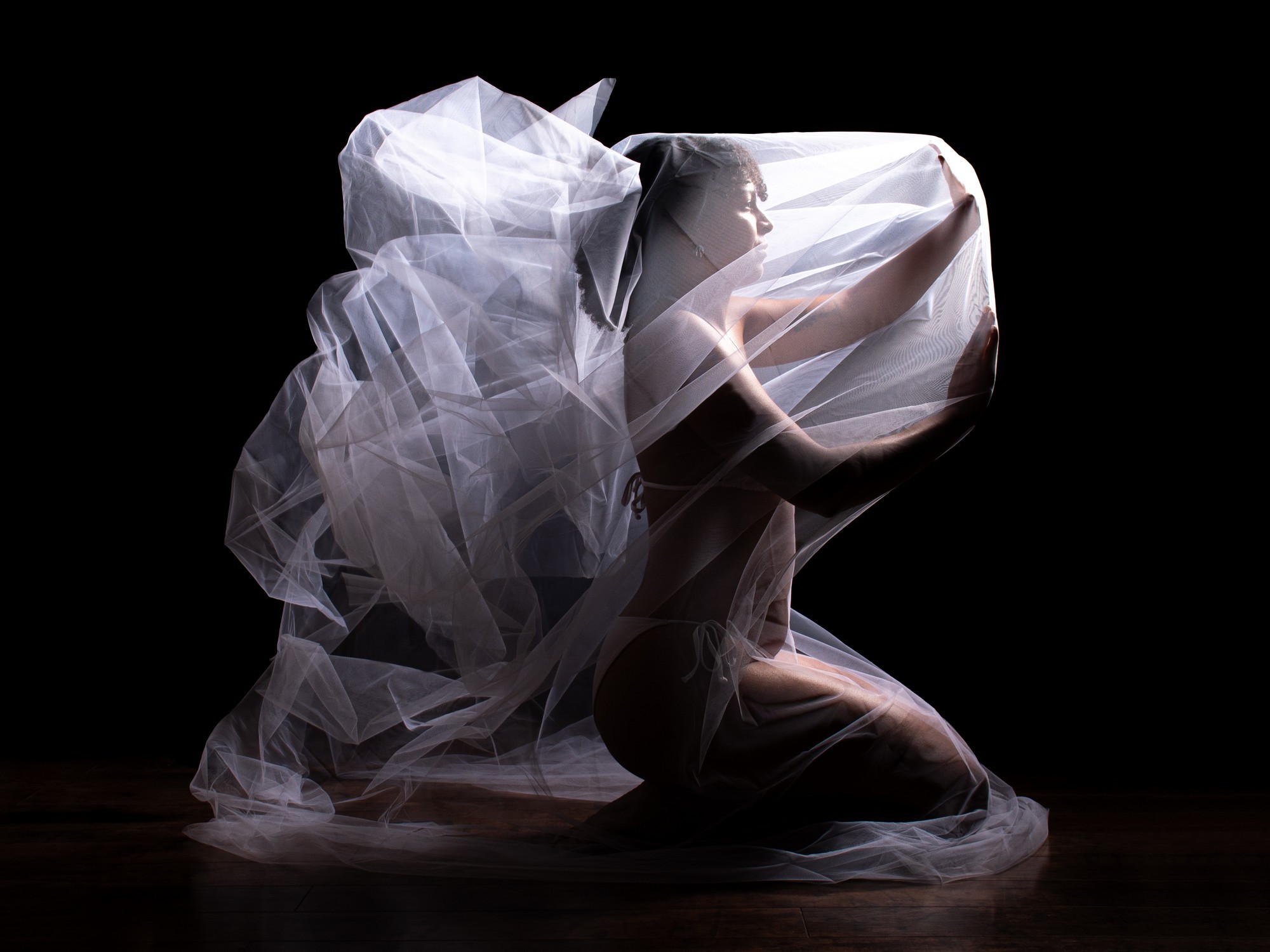 J’ai exploré le mouvement des tissus en interaction avec des modèles féminins, créant ainsi des compositions visuelles uniques et captivantes. La juxtaposition entre la légèreté des tissus et la force des gestes met en avant une harmonie subtile.